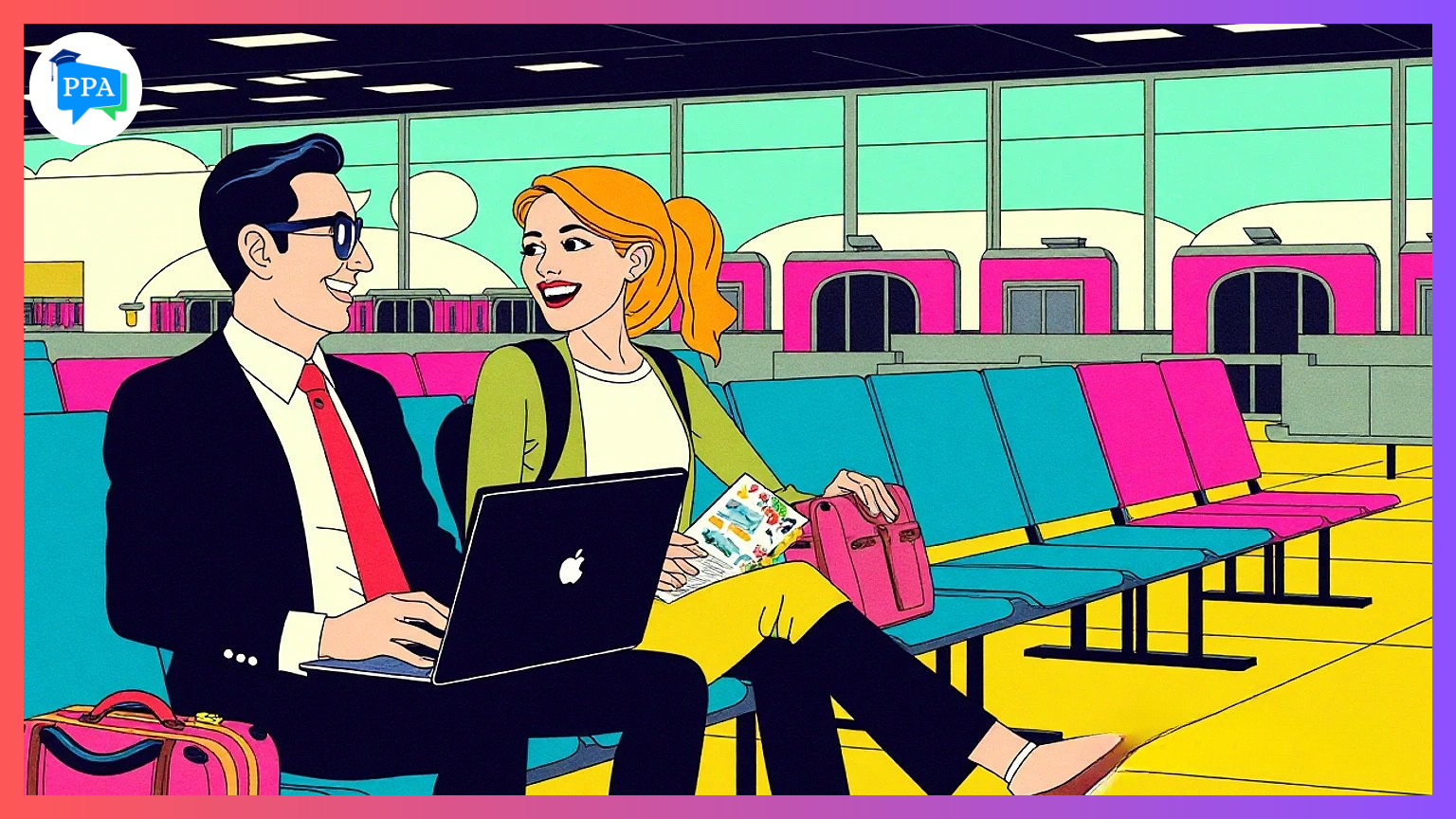 In this lesson, learners listen to a natural conversation set in an airport waiting area before boarding. The speakers introduce themselves, talk about their jobs, daily life, and reasons for traveling. One speaker is traveling for business, while the other is traveling for pleasure. The lesson helps learners practice the present simple tense, asking and answering questions, and making small talk in real-life situations.