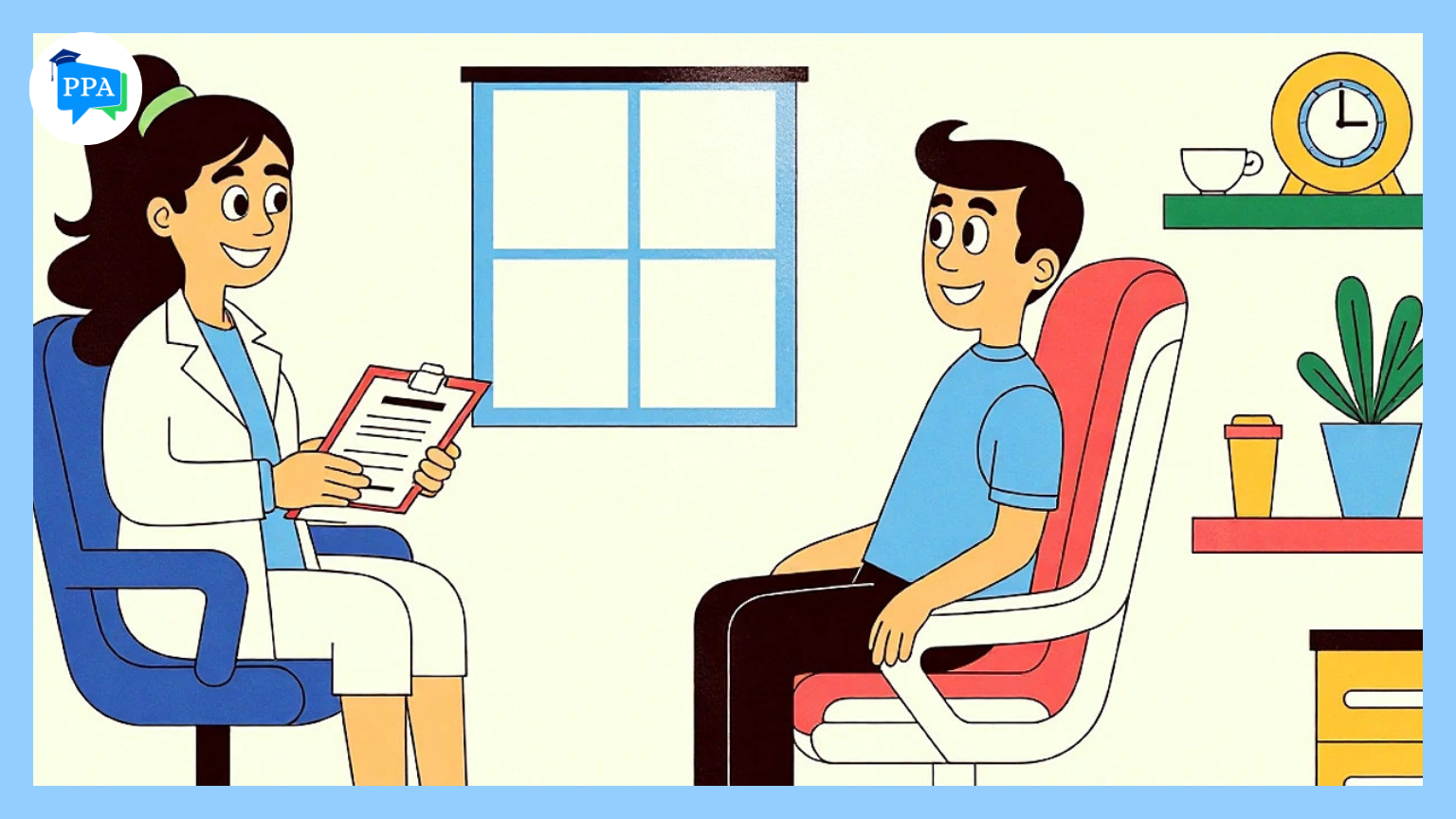 In this lesson, you will listen to a natural conversation between a doctor and a patient. You will learn how to talk about daily routines and habits using the present simple tense. The lesson focuses on adverbs of frequency and common health-related questions used in real life.